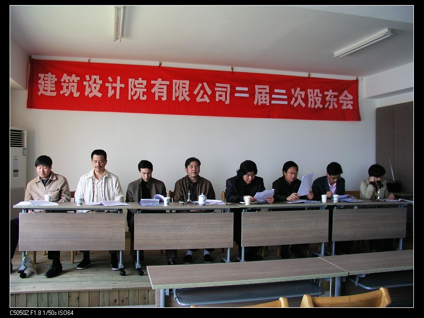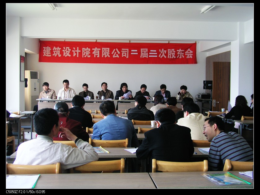 金華市建筑設計院有限公司股東會于二00九年四月十一日在公司十一樓會議室隆重召開。會議審議通過了二00八年董事會工作報告、監(jiān)事工作報告、財務報告及分紅預案。會議以無記名投票方式選舉產(chǎn)生了公司第三屆董事會董事及監(jiān)事。當選董事為陳將生、杜禮琪、吳學敏、章子源、傅志寶、樓希龍等六人。當選監(jiān)事為陳鳴。又訊,吳學敏繼續(xù)當選為公司董事會董事長。